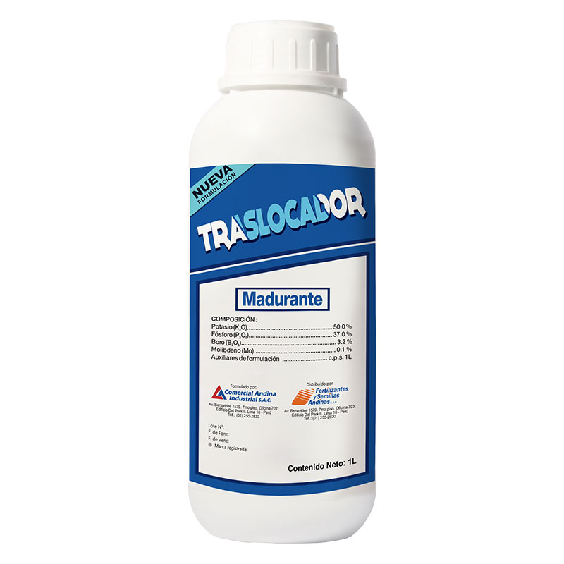 (Potassium K2O) Biostimulant high in potassium which favors maturation, concentration and accumulation of sugars in the fruit. (Improving Tasting of these features).